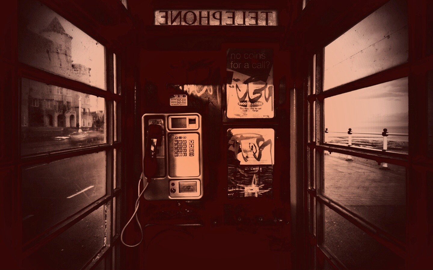 Обои для рабочего стола «Телефонная будка» 1440х900 с фильтром toaster (оригинал 1920х1200)