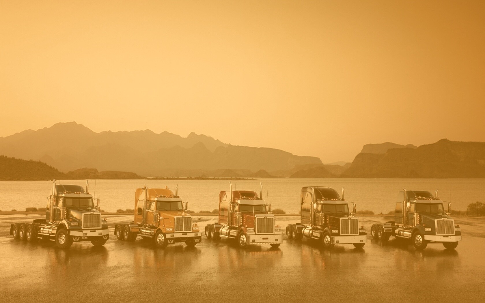 «Тягачи на фоне озера»