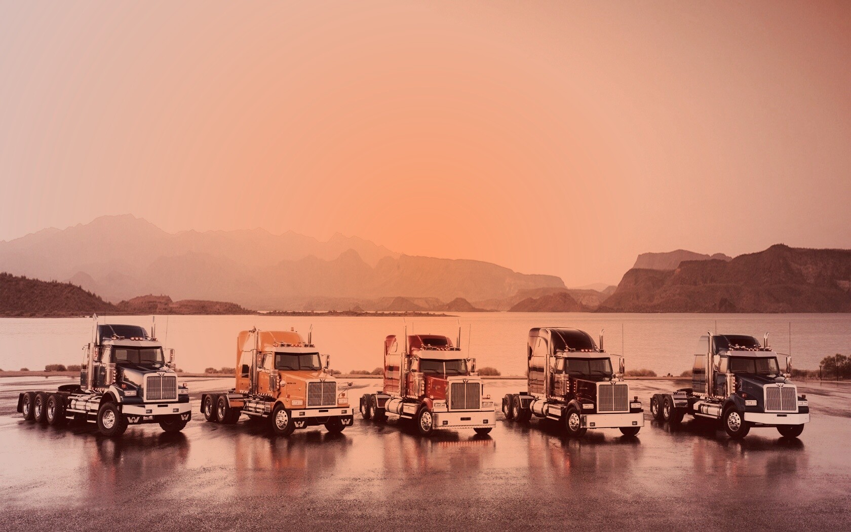 «Тягачи на фоне озера»