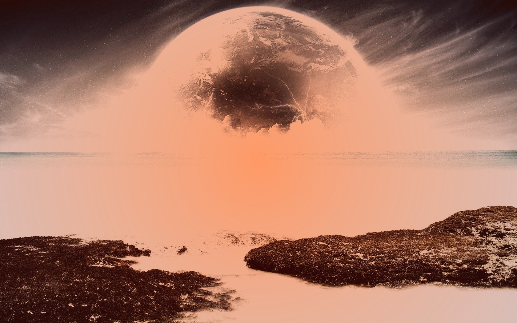 «Огромная луна над океаном»