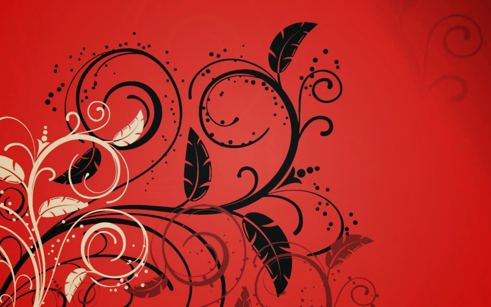 «Черно-белые листики на красном фоне»