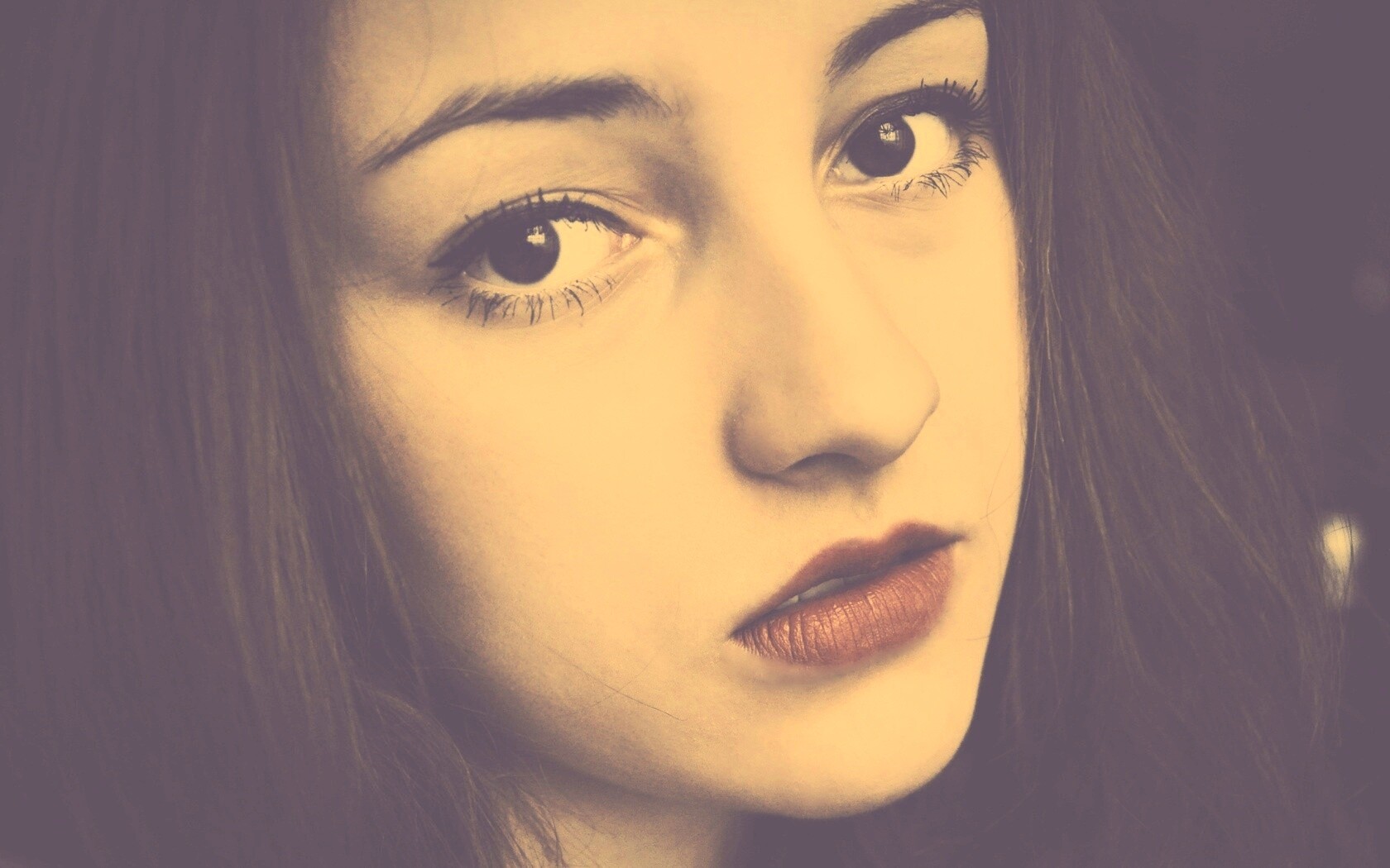 «Брюнетка с ярким макияжем и печальным лицом»