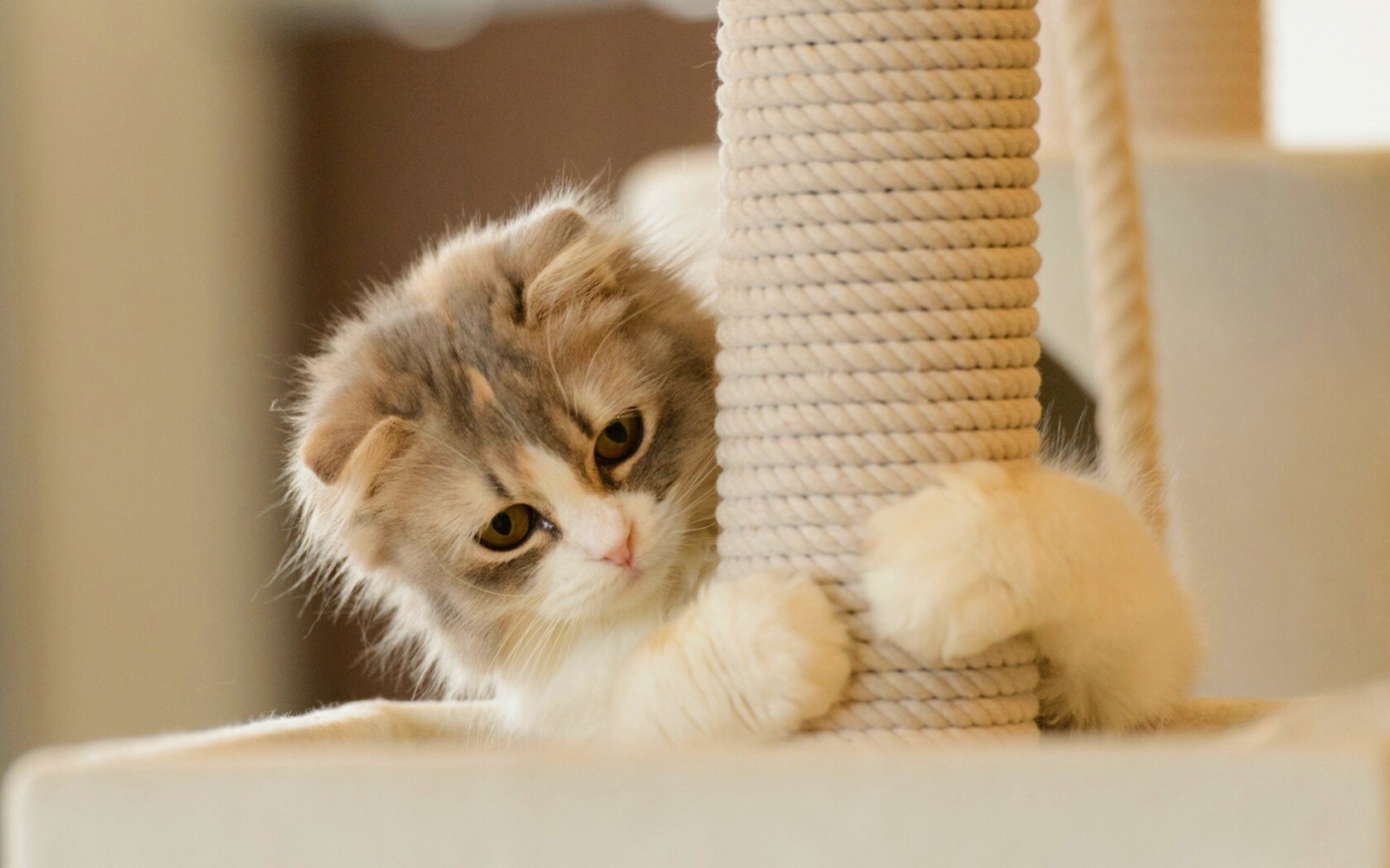 «Пушистая кошка с когтеточкой»
