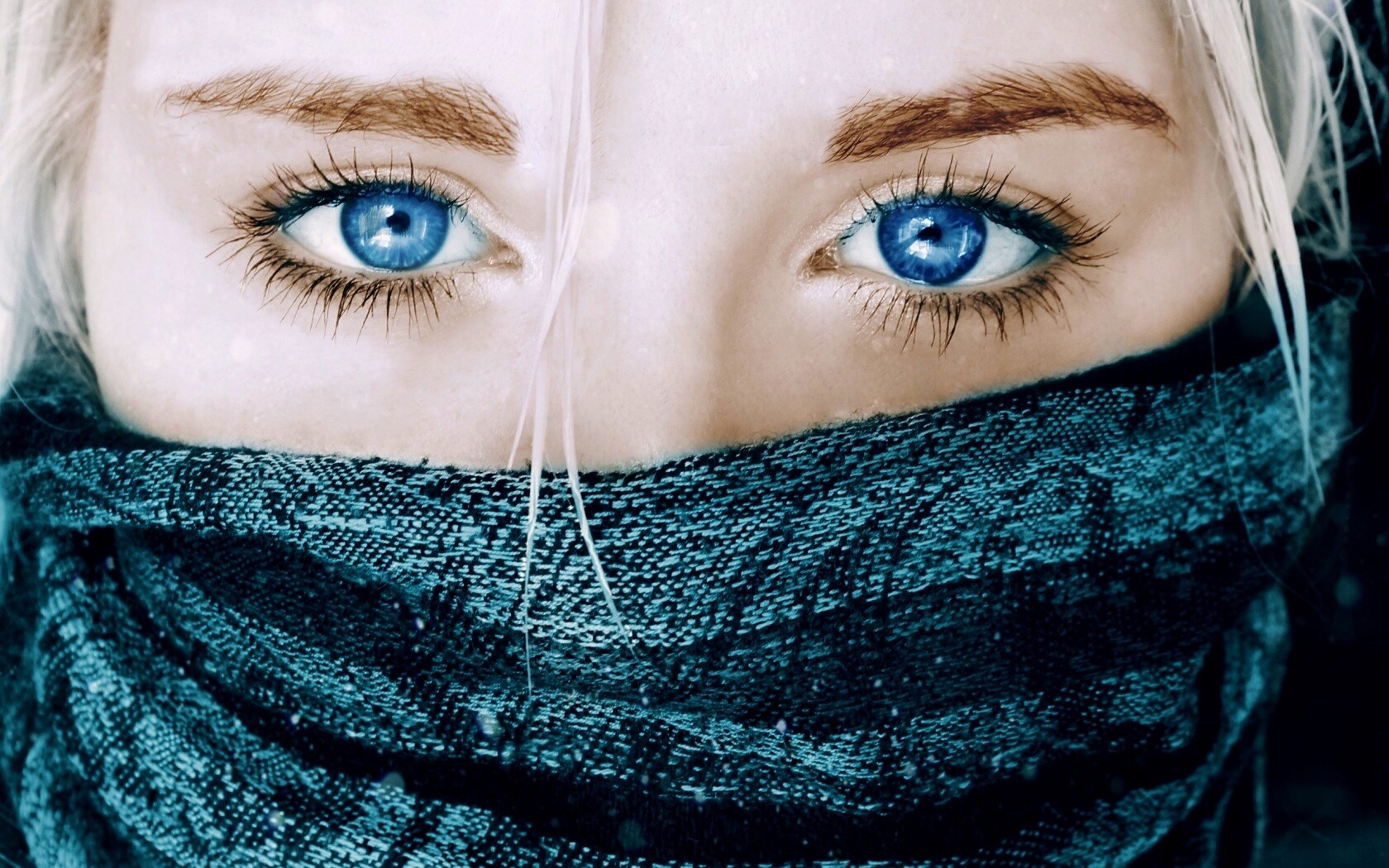 «Блондинка с шарфом на лице»