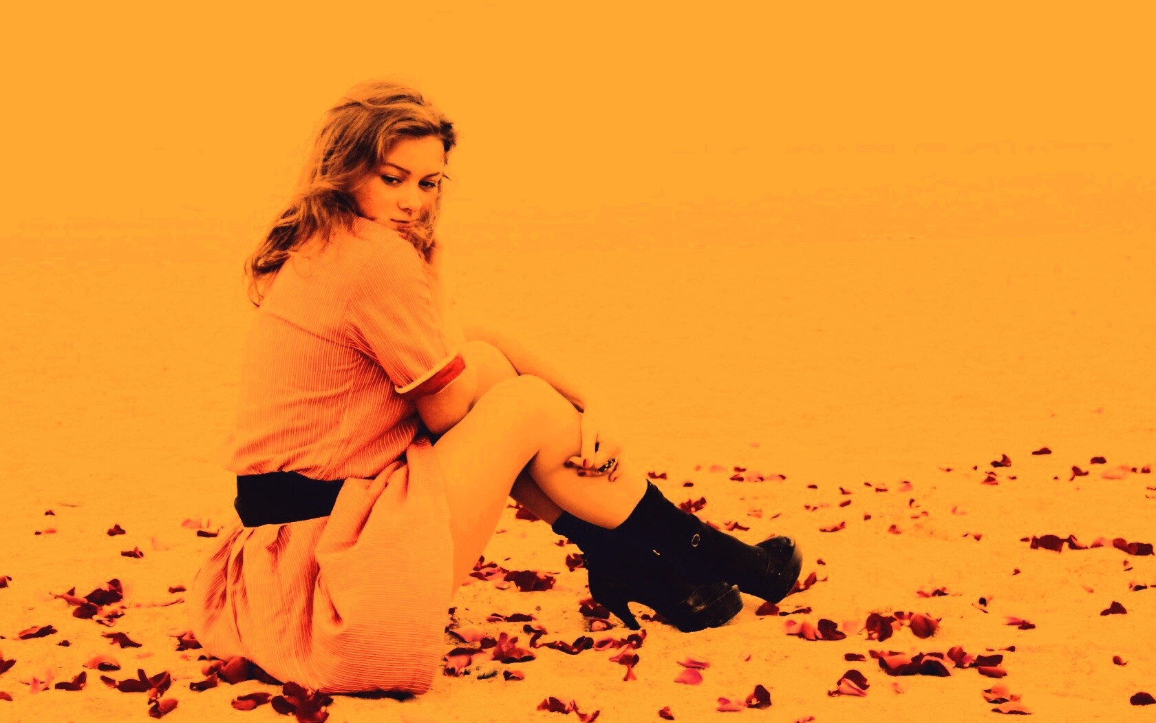 «Девушка среди лепестков на пляже»