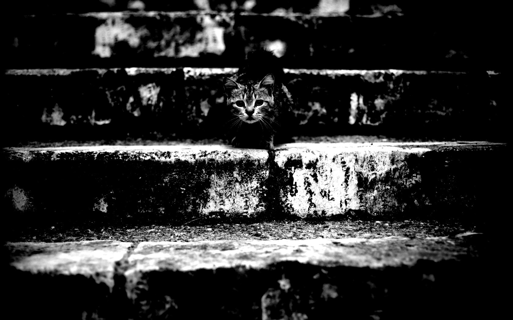 «Растрепанная кошка на ступеньках лестницы»