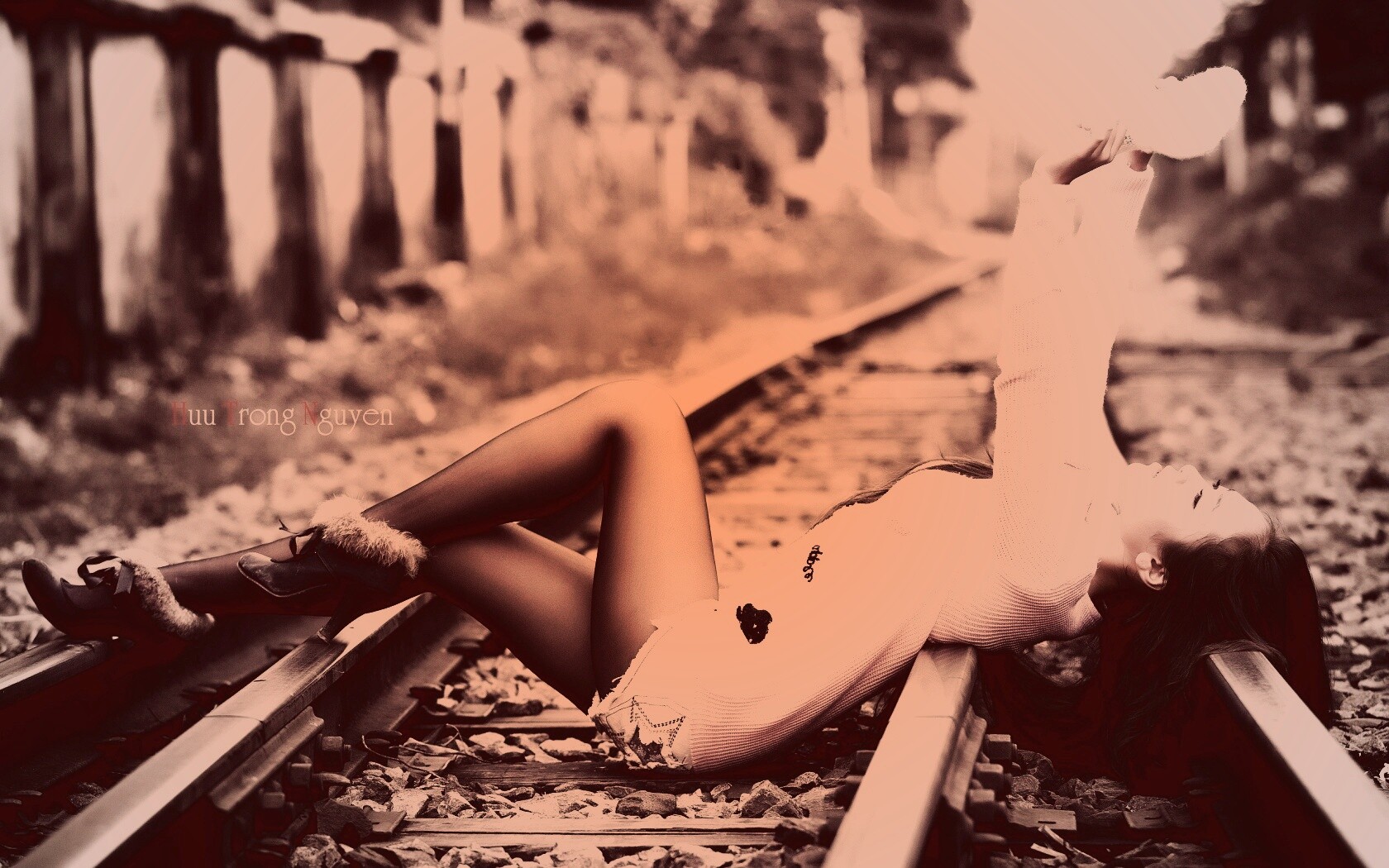 «Модель на железнодорожных путях»