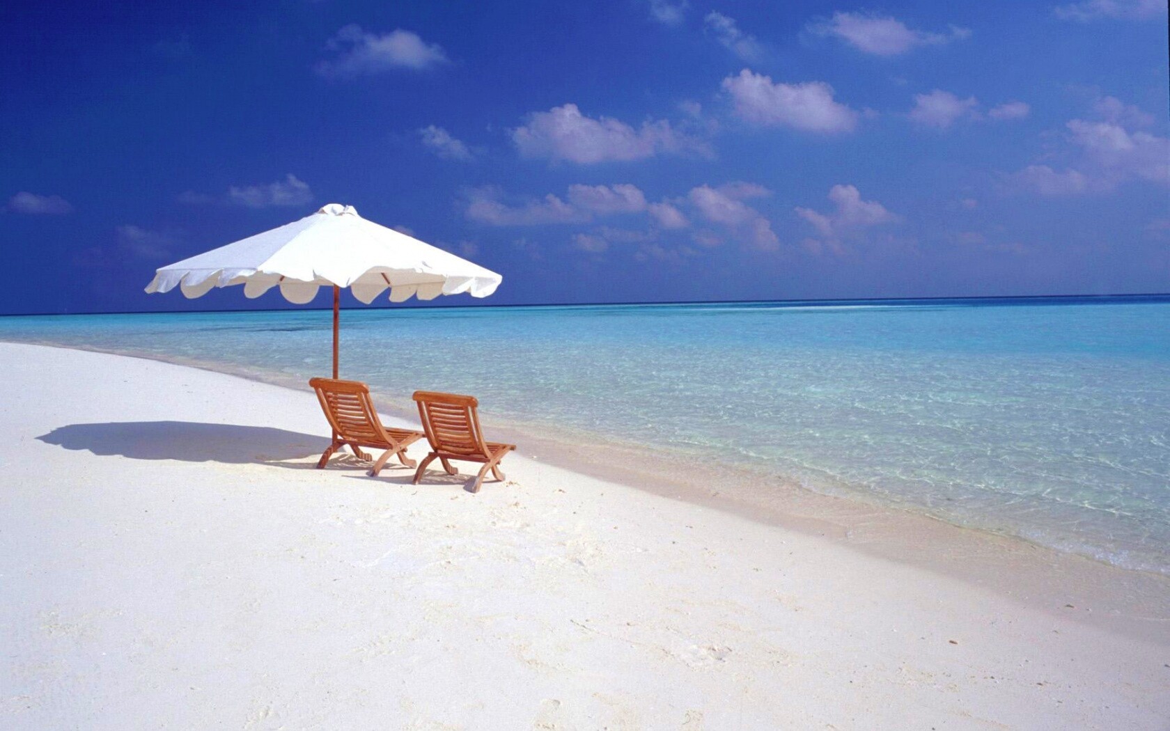 «Песчаный пляж с двумя жезлонгами»