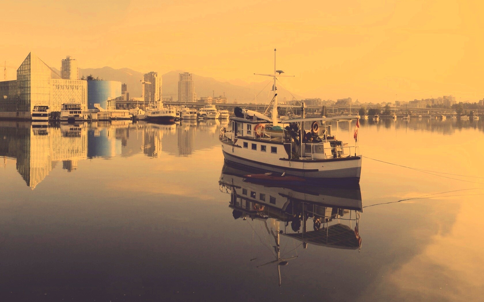 Обои для рабочего стола «Городская панорама» 1680х1050 с фильтром nashville (оригинал 3840х1200)