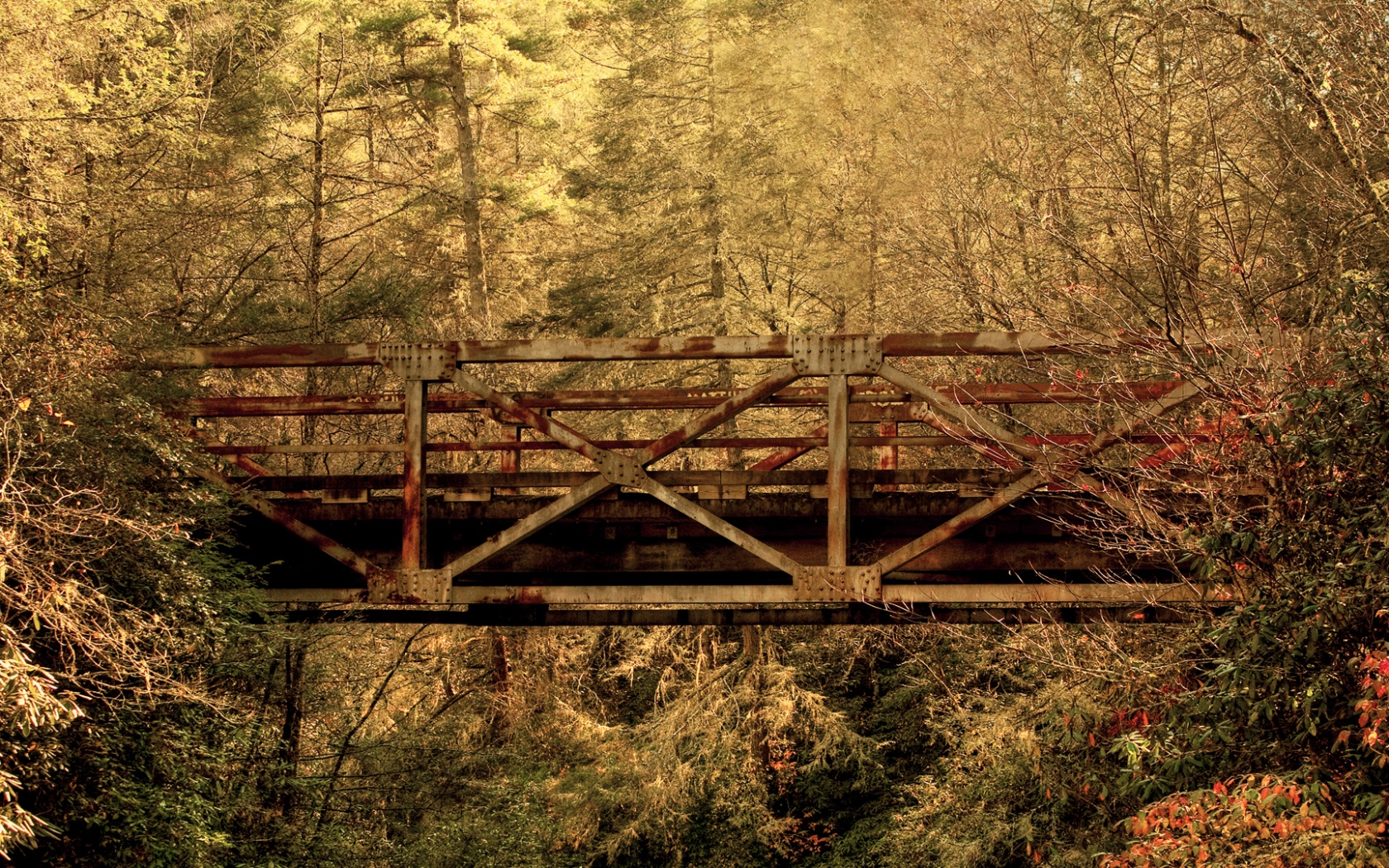 Обои для рабочего стола «Металлический мост в лесной глуши» 1680х1050 (оригинал 1920х1080)