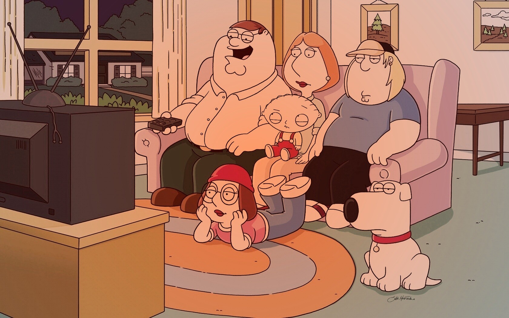 «Гриффины всей семьей перед телевизором»