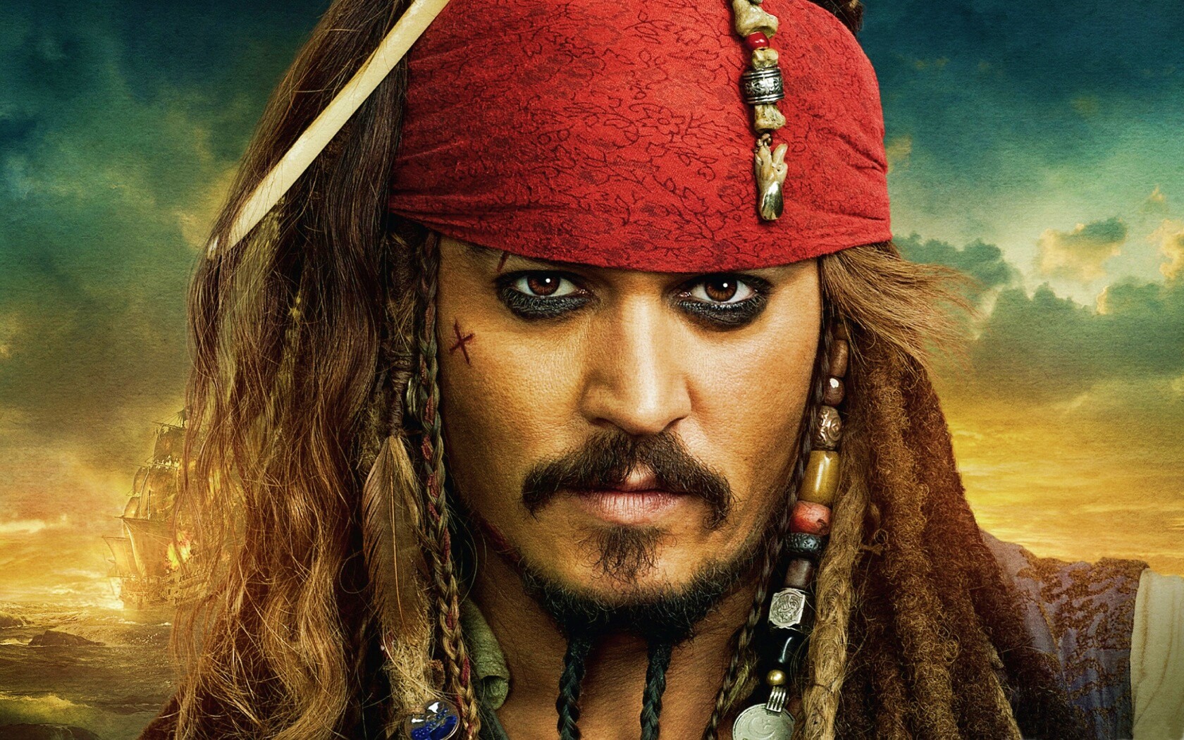 Обои для рабочего стола «Капитан Джек Воробей» 1680х1050 с фильтром vibrance (оригинал 2560х1600)