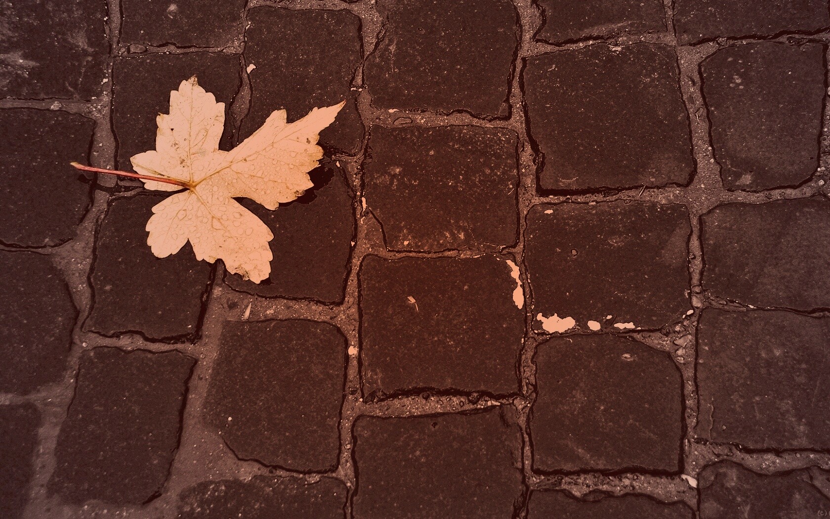Обои для рабочего стола «Упавший лист на мостовой» 1680х1050 с фильтром toaster (оригинал 1920х1080)