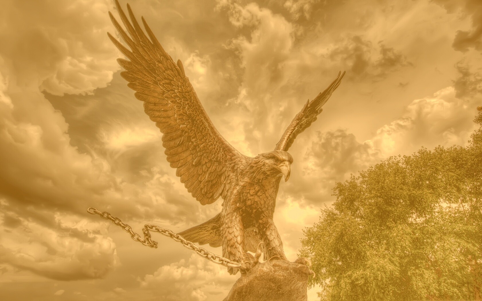 Обои для рабочего стола «Скульптура орла с цепью в когтях» 1680х1050 с фильтром kelvin (оригинал 2144х1424)