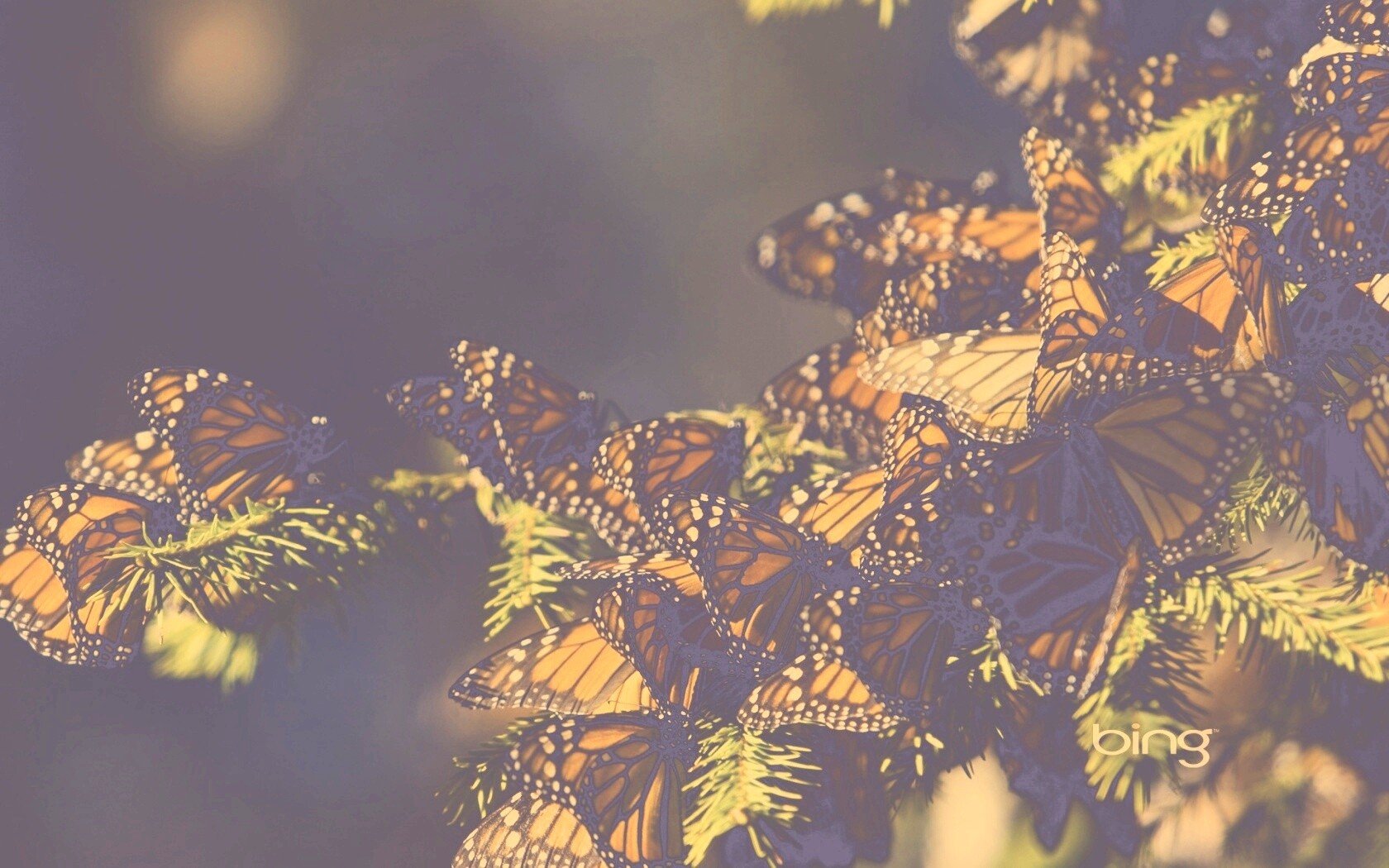 Обои для рабочего стола «Бабочки облепили ёлку» 1680х1050 с фильтром nashville (оригинал 1920х1200)