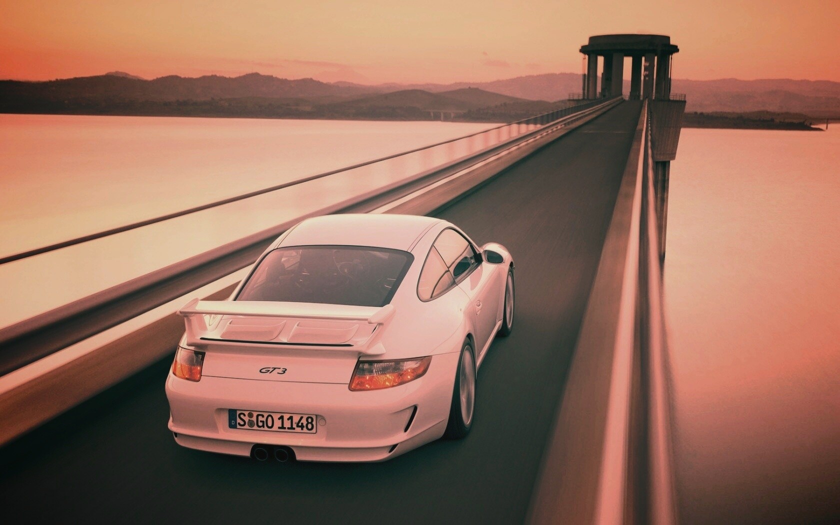 Обои для рабочего стола «Порше на дамбе» 1680х1050 с фильтром earlybird (оригинал 1920х1200)