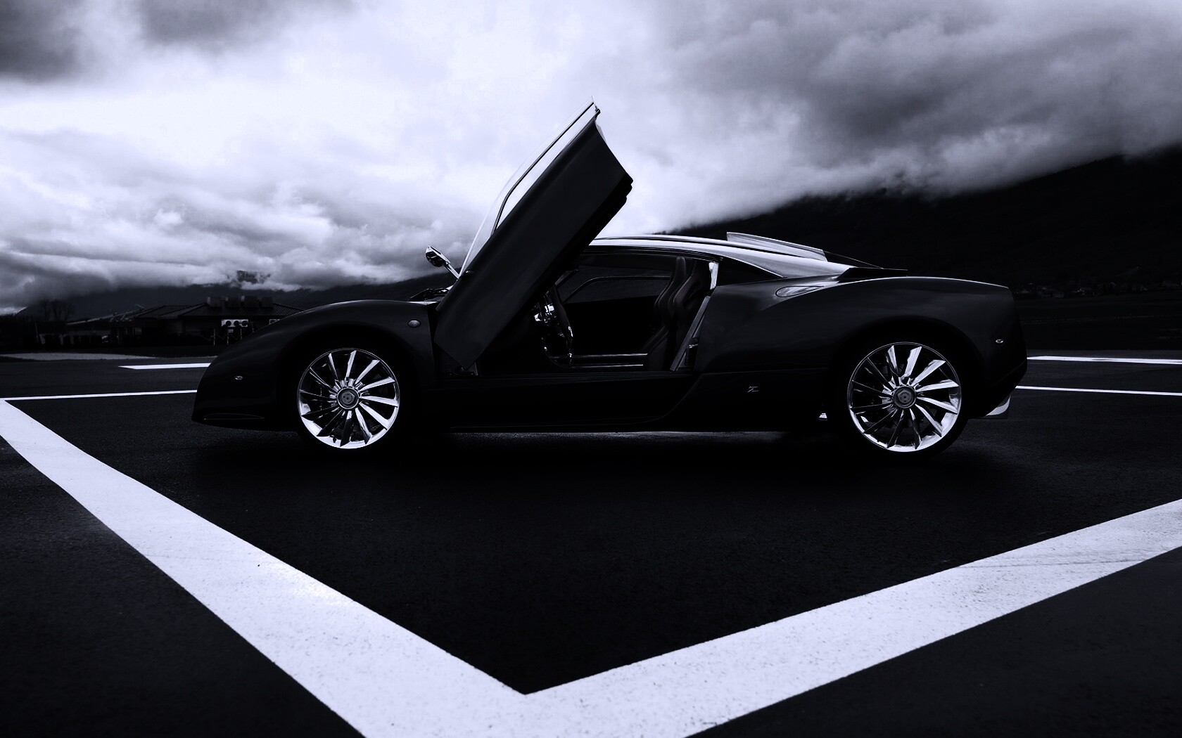 Обои для рабочего стола «Spyker C12 на аэродроме» 1680х1050 с фильтром gotham (оригинал 1920х1200)