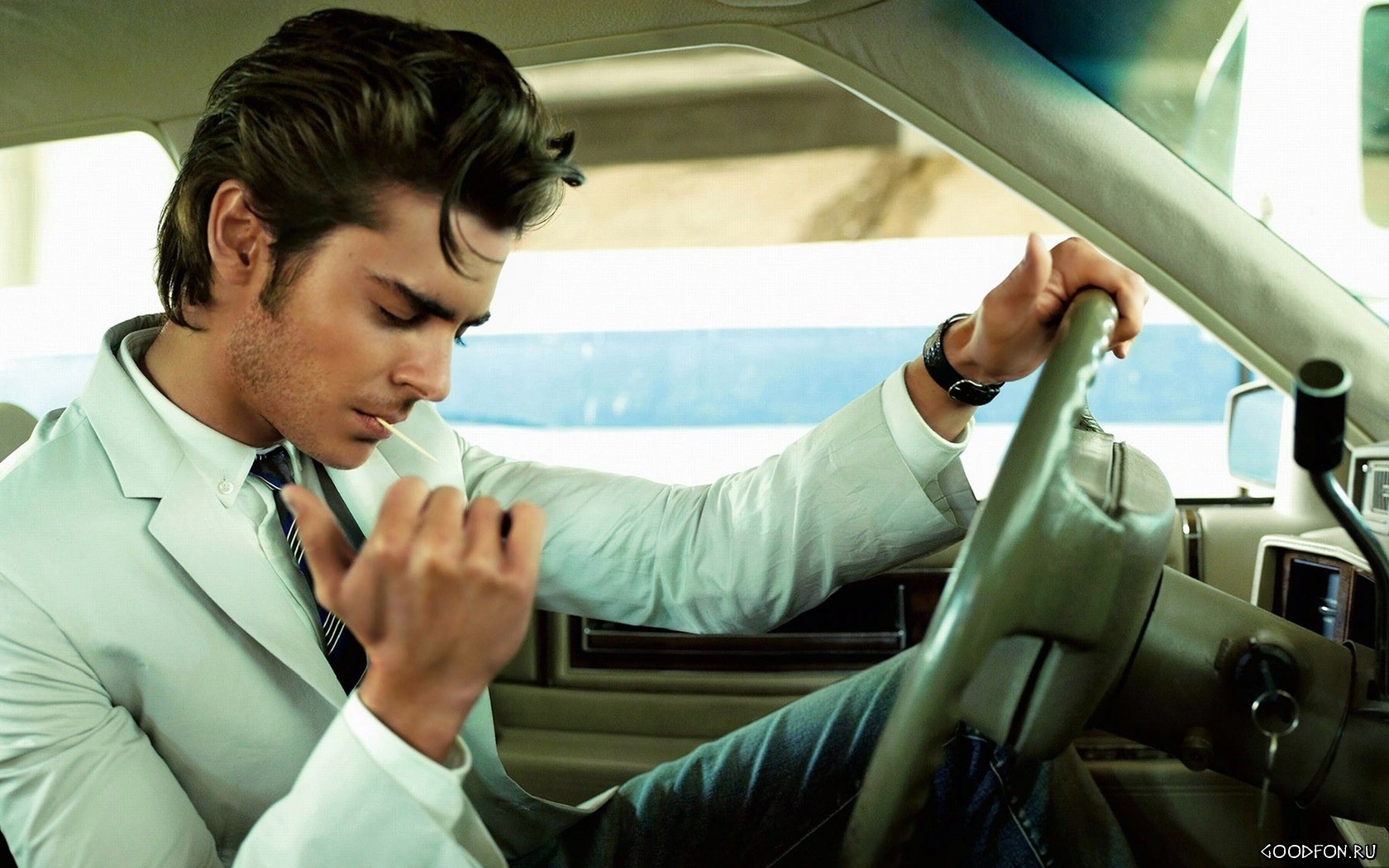 «Мужчина прикуривает в машине»