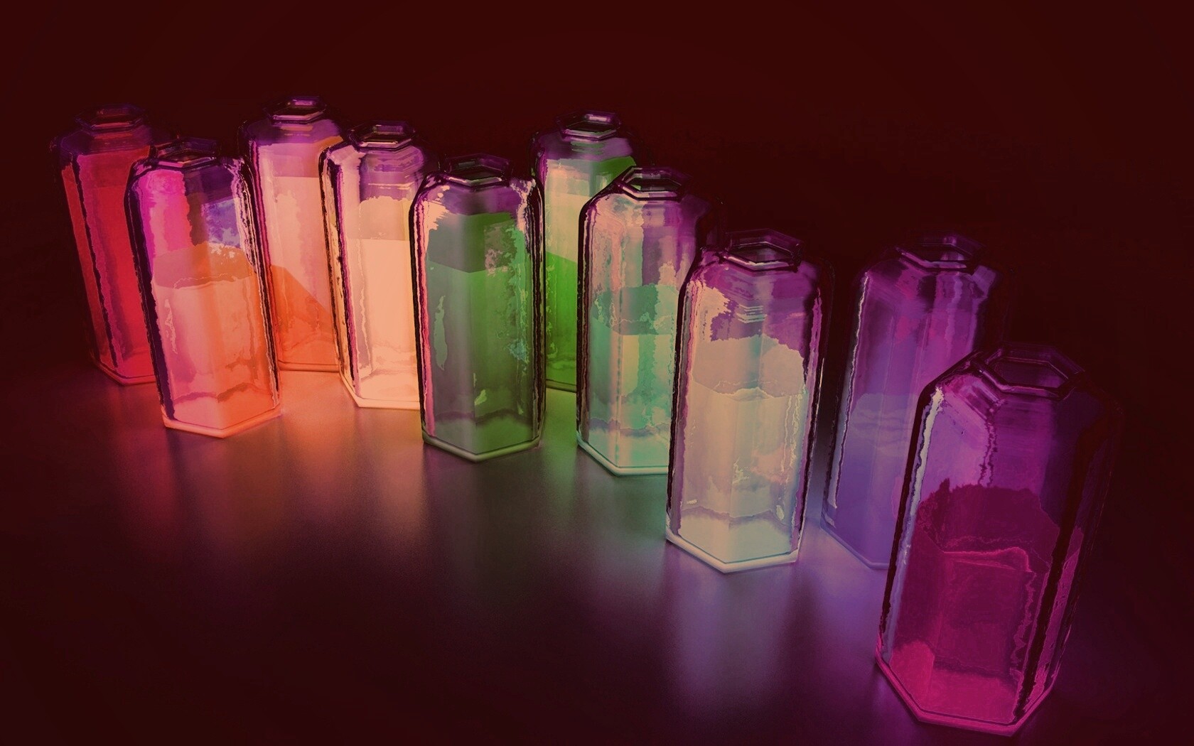 Обои для рабочего стола «Баночки с цветными жидкостями» 1680х1050 с фильтром toaster (оригинал 1920х1080)