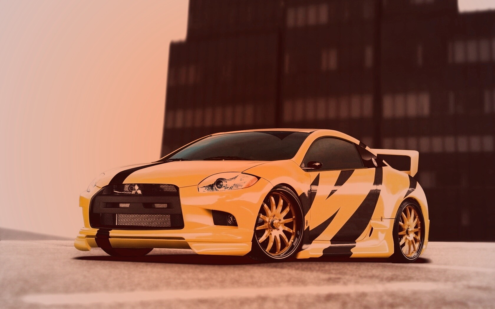 Обои для рабочего стола «Mitsubishi жёлтого цвета с черными полосами» 1680х1050 с фильтром toaster (оригинал 1920х1440)