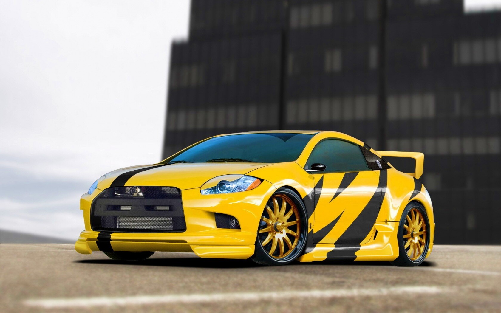 Обои для рабочего стола «Mitsubishi жёлтого цвета с черными полосами» 1680х1050 с фильтром vibrance (оригинал 1920х1440)