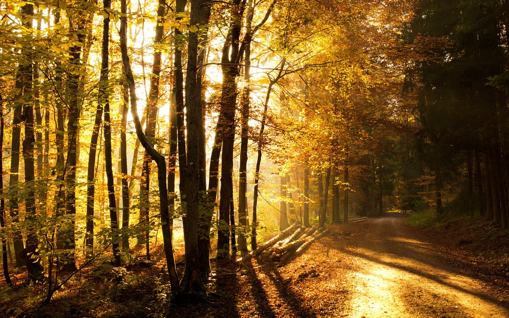 «Дорога вдоль просеки в осеннем лесу»