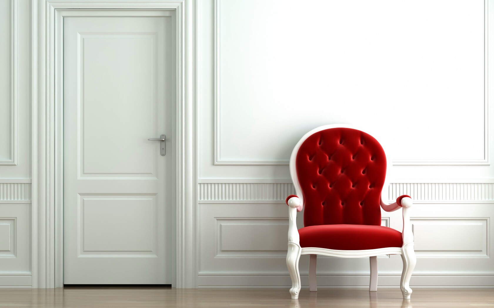 «красное кресло в белой комнате»
