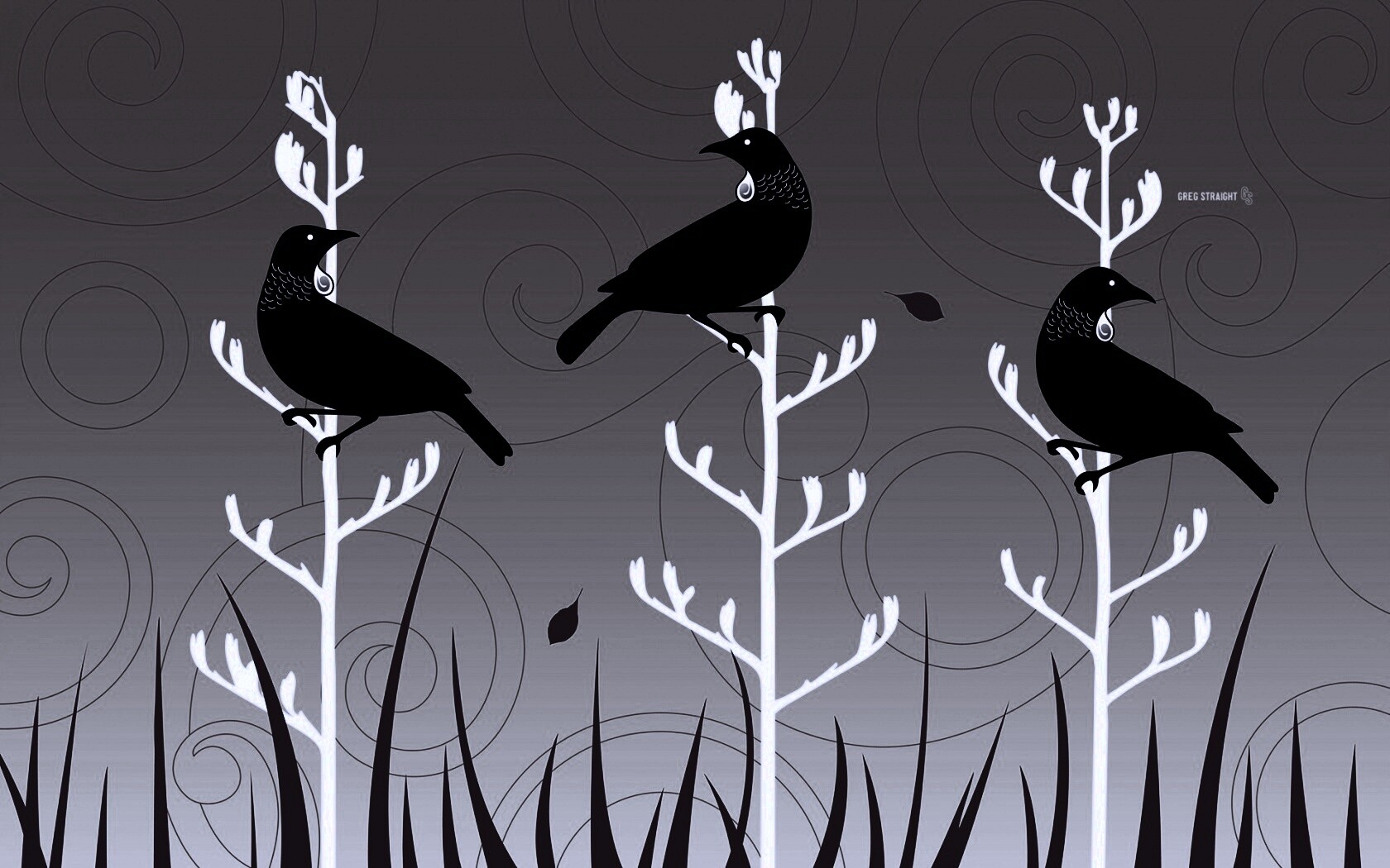 «Векторные стилизованные птицы на ветках дерева»