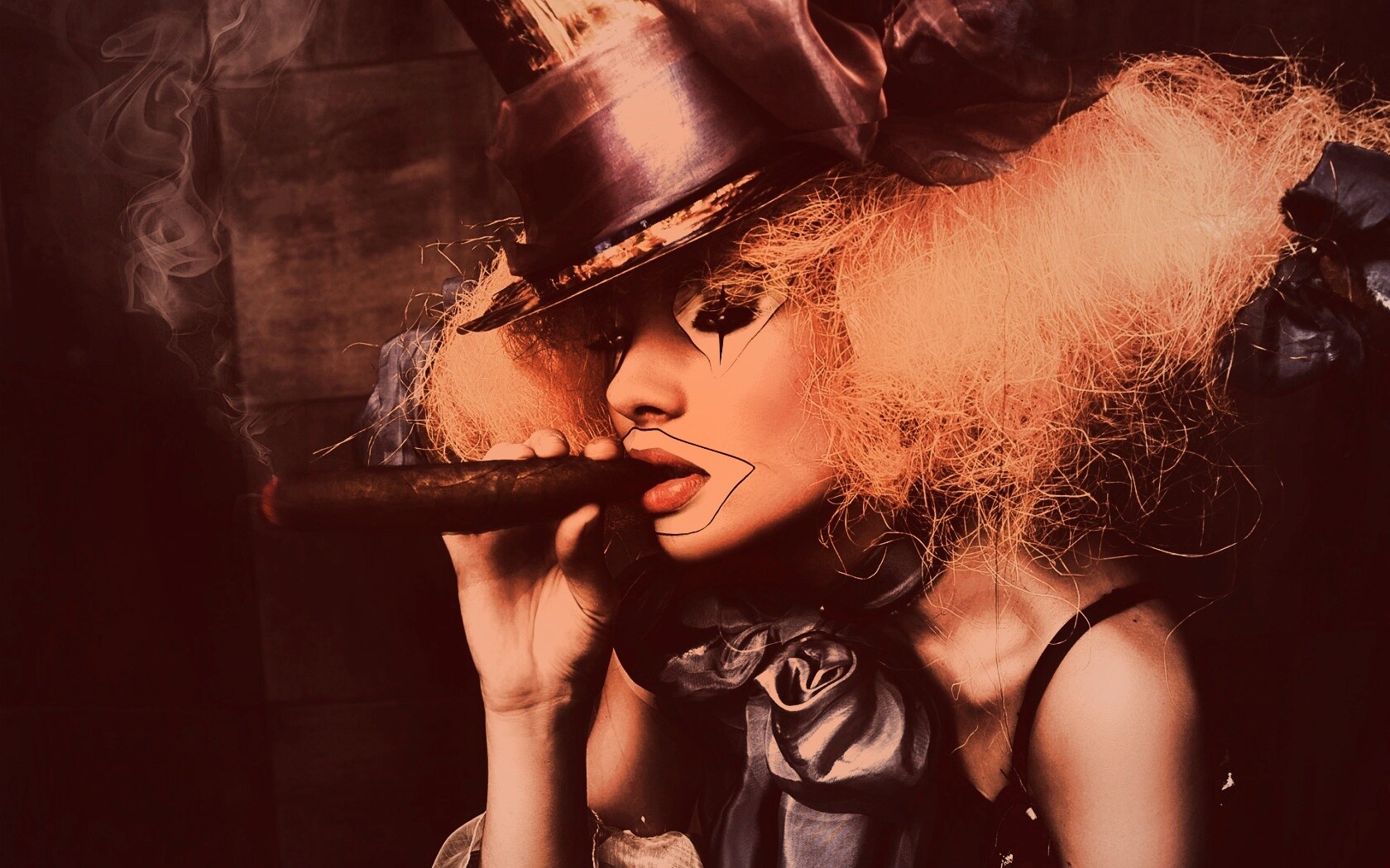 «Девушка клоун курит сигару»