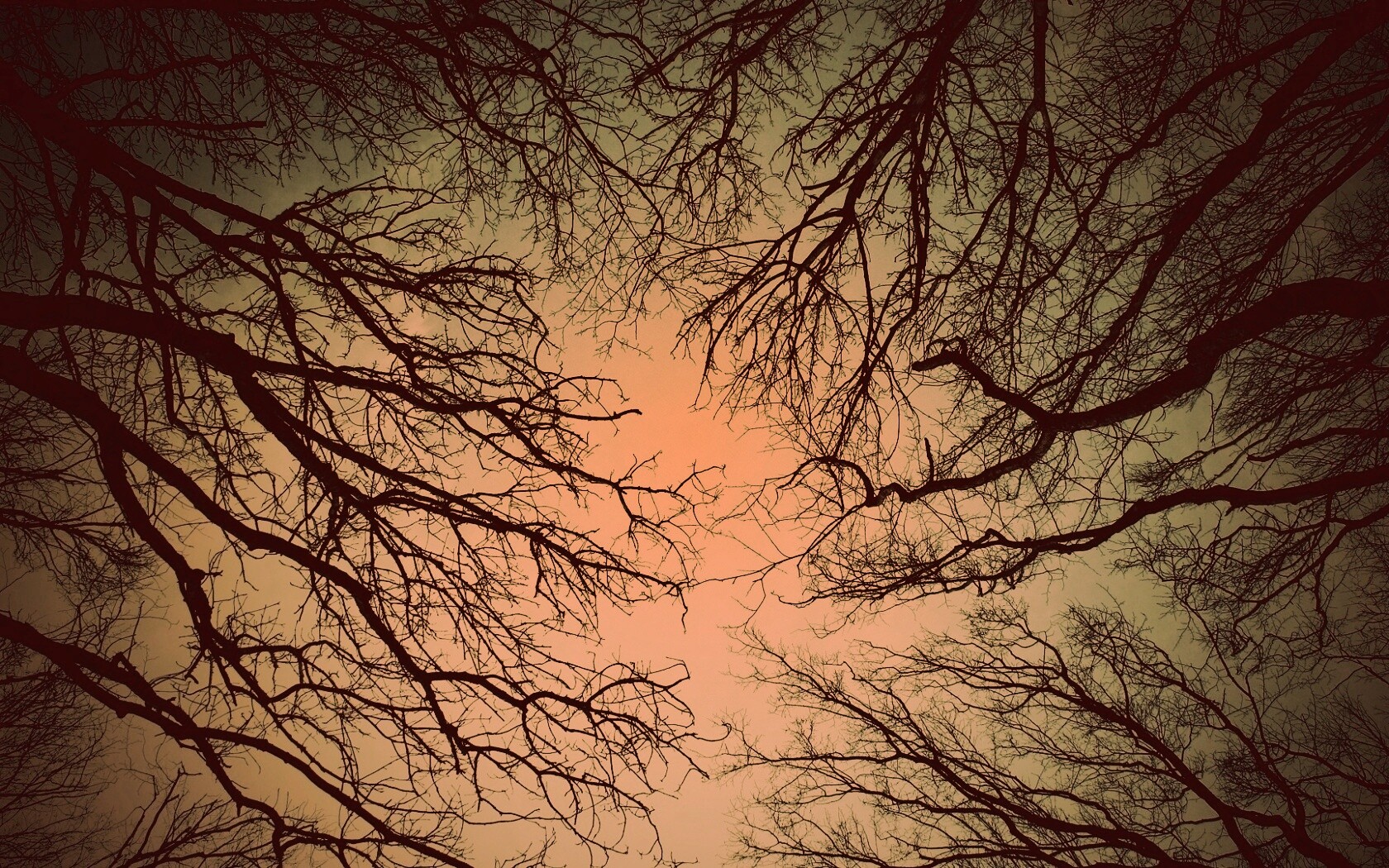 Обои для рабочего стола «Голые кроны деревьев на фоне неба» 1680х1050 с фильтром toaster (оригинал 1920х1080)