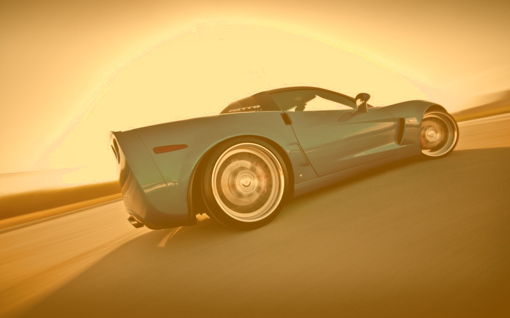 Обои для рабочего стола «Гоночный спорткар синего цвета» 1680х1050 с фильтром kelvin (оригинал 4240х2796)