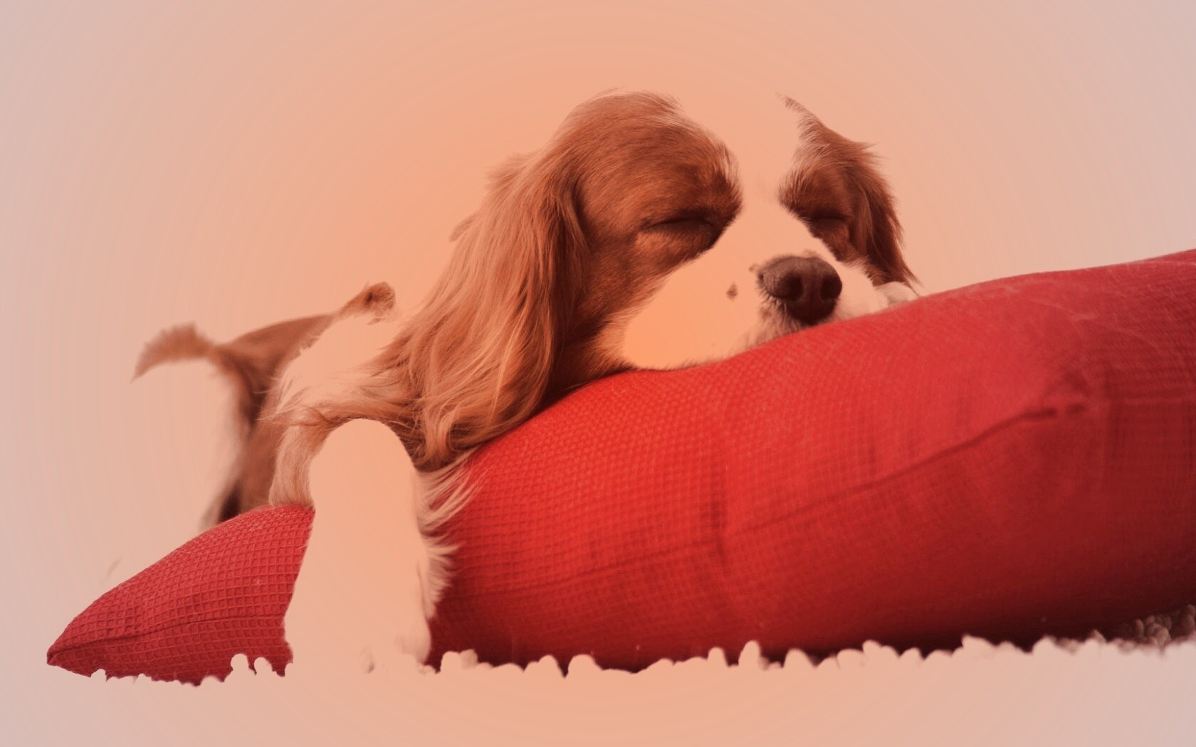 «Спящий щенок на красной подушке»