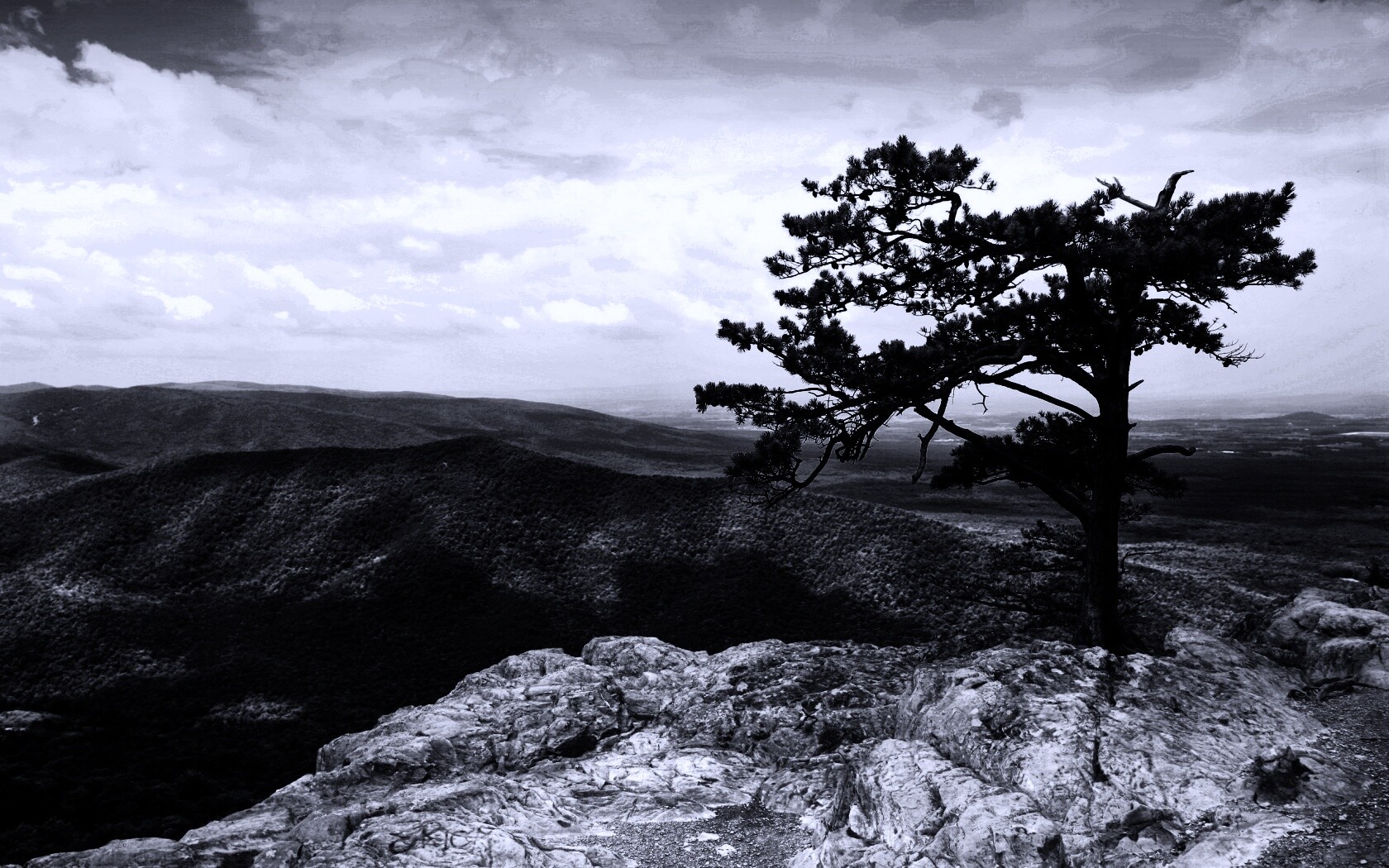 «Горное дерево в черно-белых тонах»