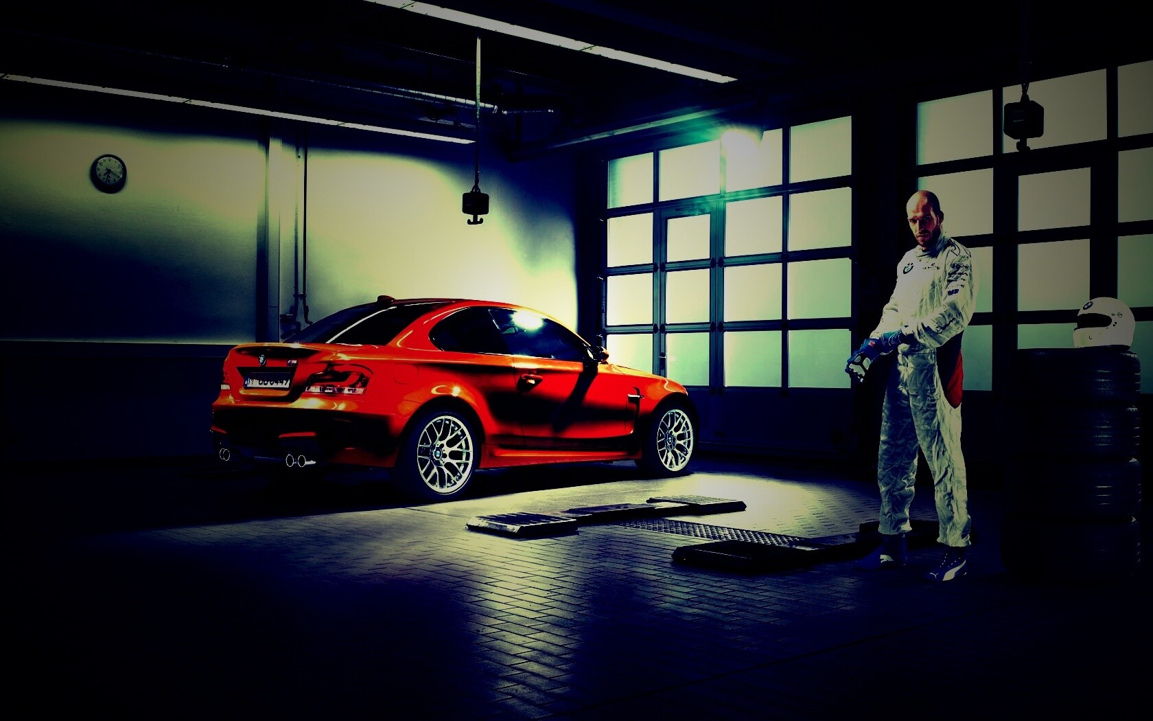 «Гонщик и BMW M1 в гараже»