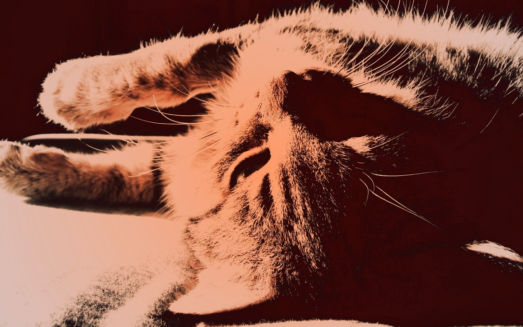 Обои для рабочего стола «Нежащийся кот» 1680х1050 с фильтром toaster (оригинал 2048х1536)