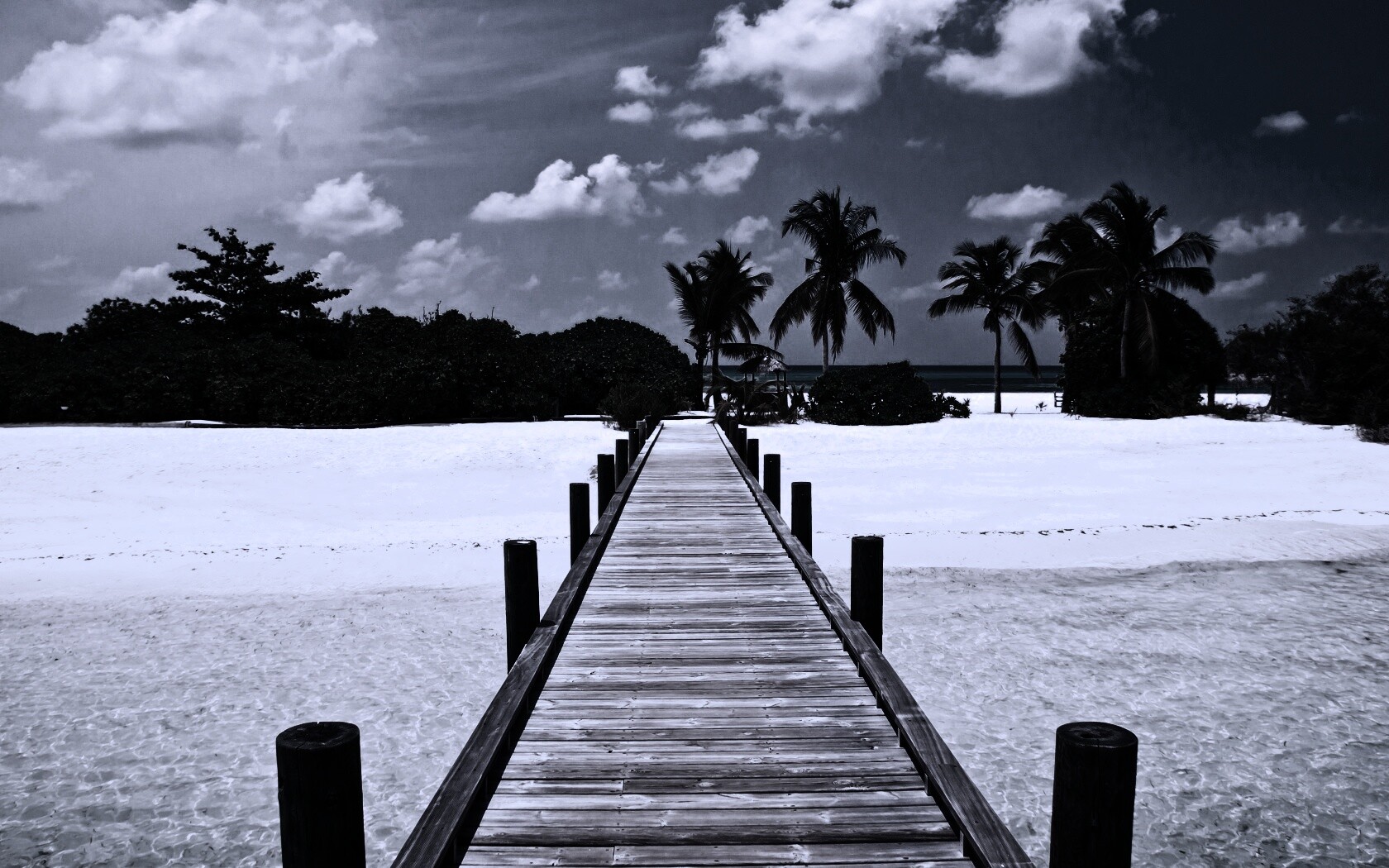 Обои для рабочего стола «Пирс на тропическом острове» 1680х1050 с фильтром gotham (оригинал 3700х2458)