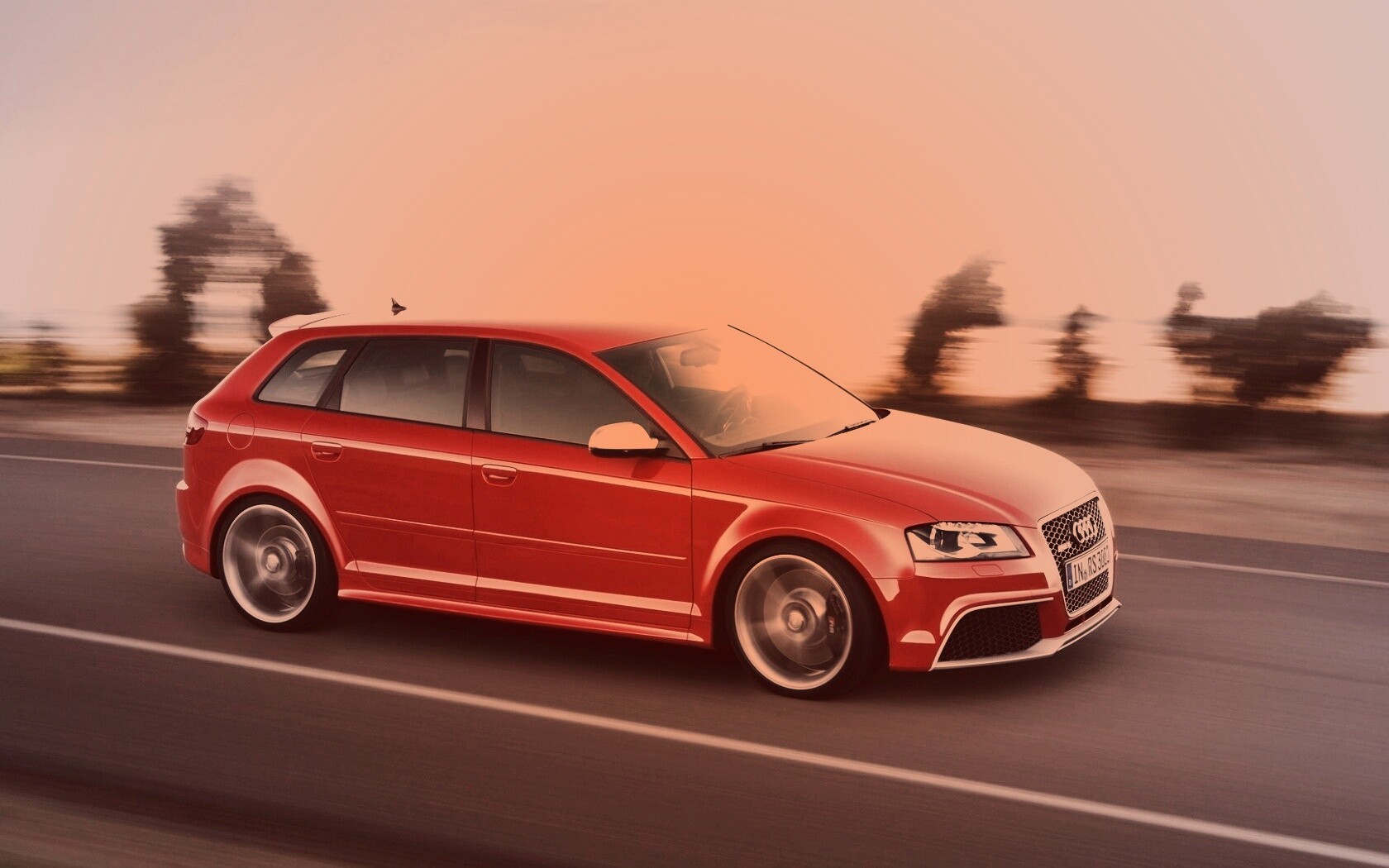 «Красная Audi модели RS3 на дороге»