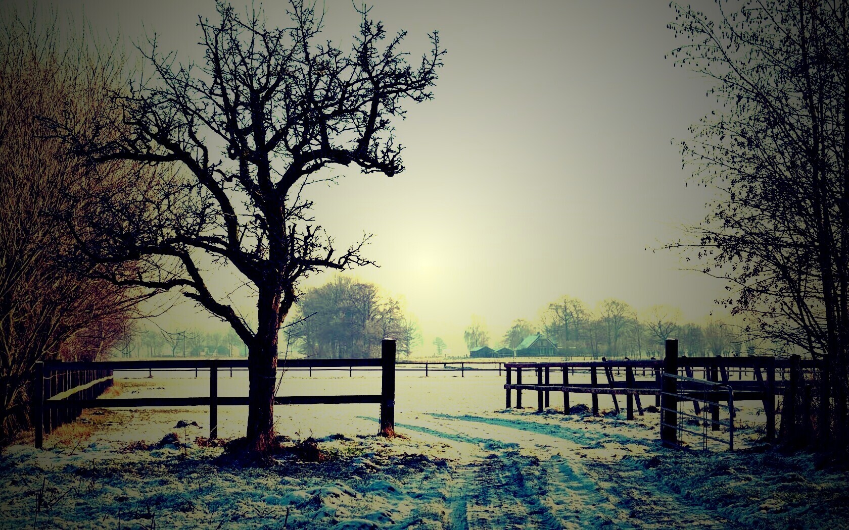 Обои для рабочего стола «Зимний пейзаж» 1680х1050 с фильтром lomo (оригинал 1920х1080)