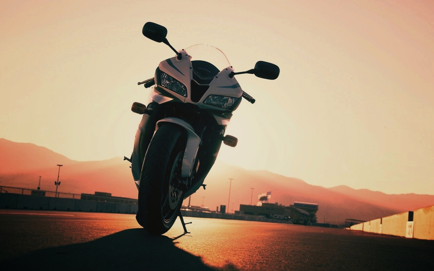 «Мотоцикл на фоне заходящего солнца»