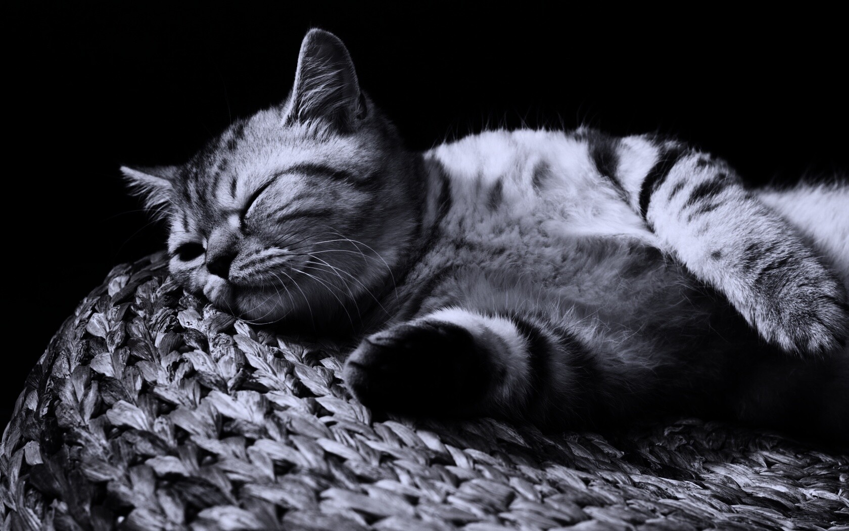 «Пушистый кот спит на корзине»