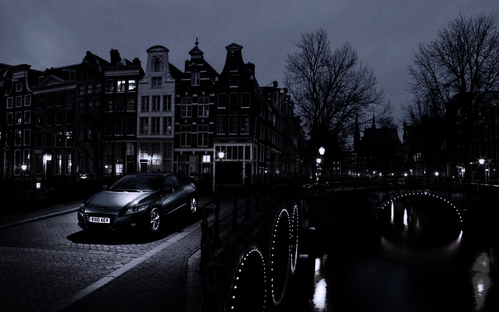 «Автомобиль на мосту в свете фонаря»