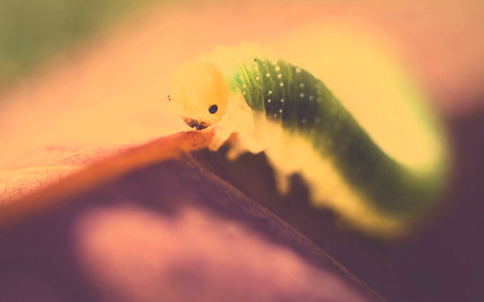Обои для рабочего стола «Гусеница бабочки на лепестке» 1680х1050 с фильтром nashville (оригинал 1920х1200)