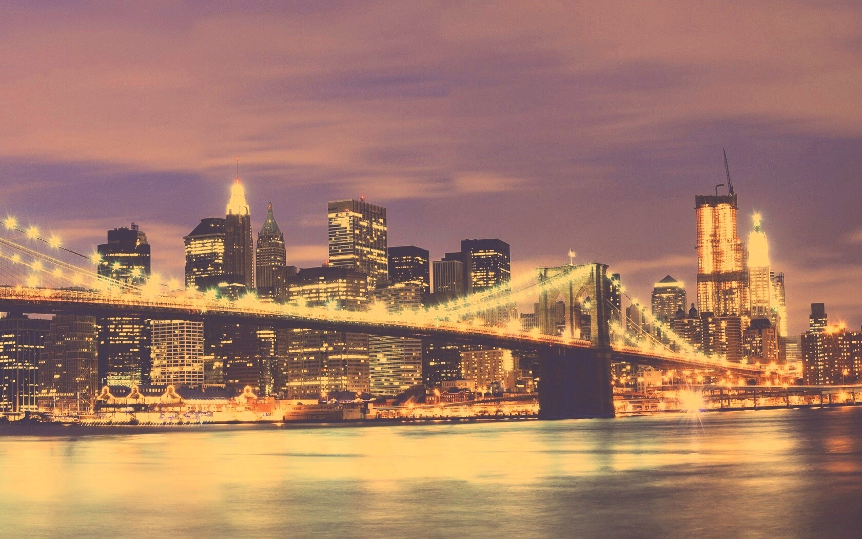 «Бруклинский мост на фоне ночного Нью-Йорка»