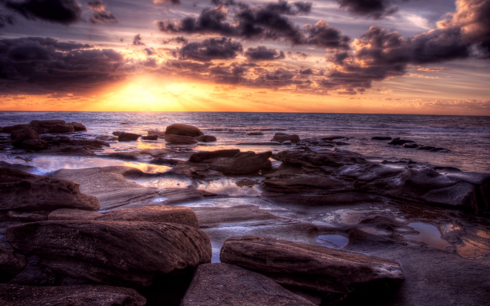 «Каменистый берег на закате»