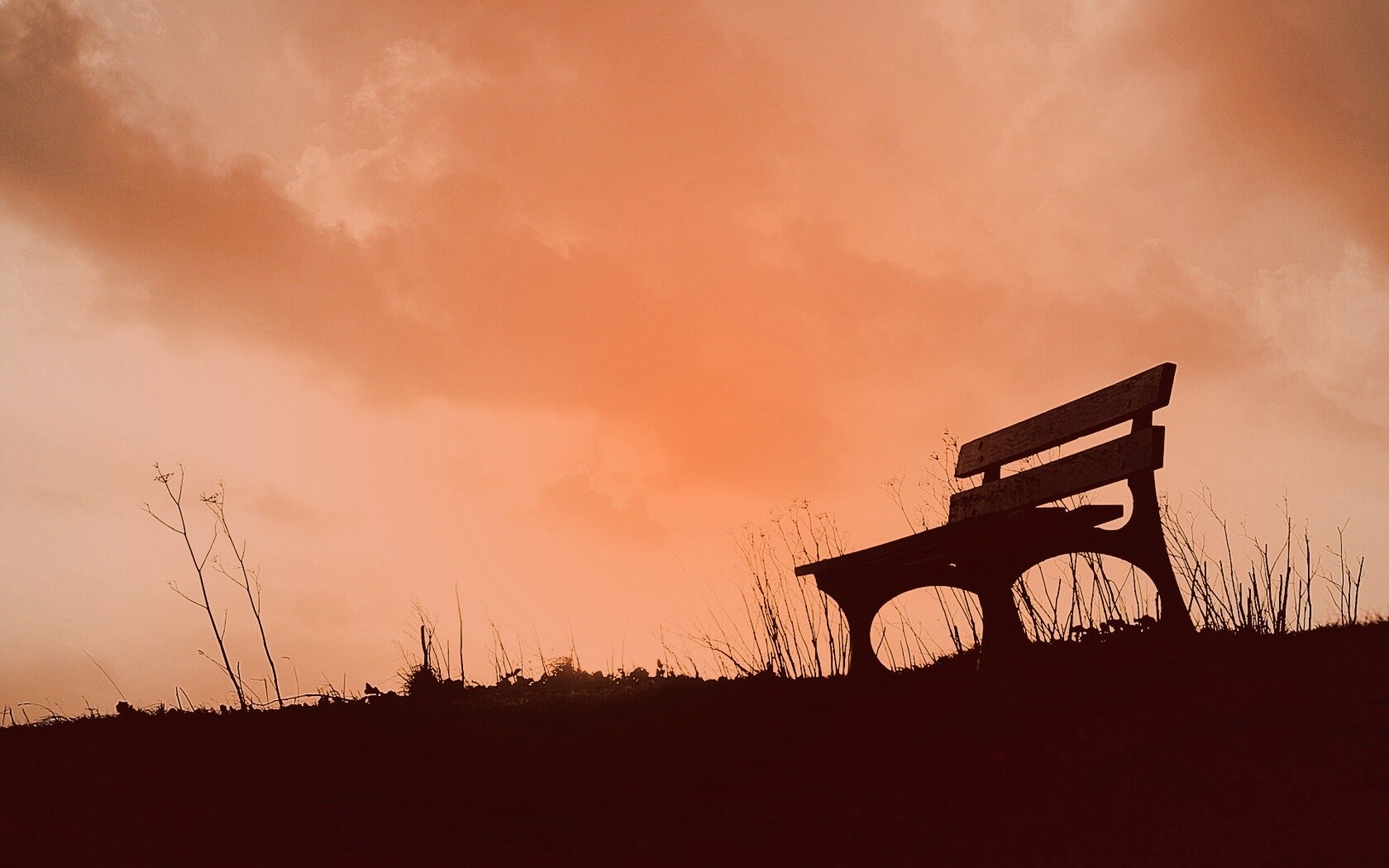 Обои для рабочего стола «Силуэт скамейки на фоне неба» 1680х1050 с фильтром toaster (оригинал 1920х1440)