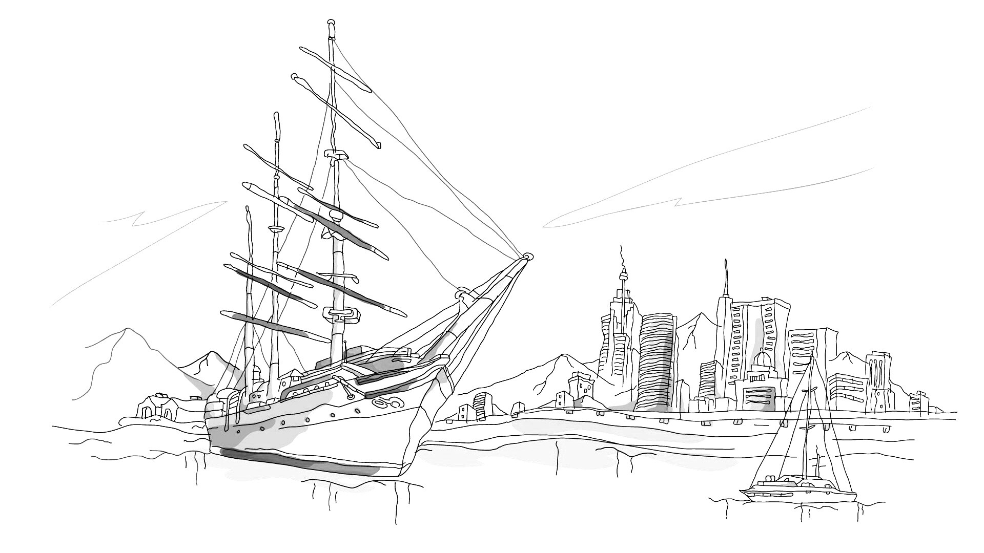 «Парусник у города»