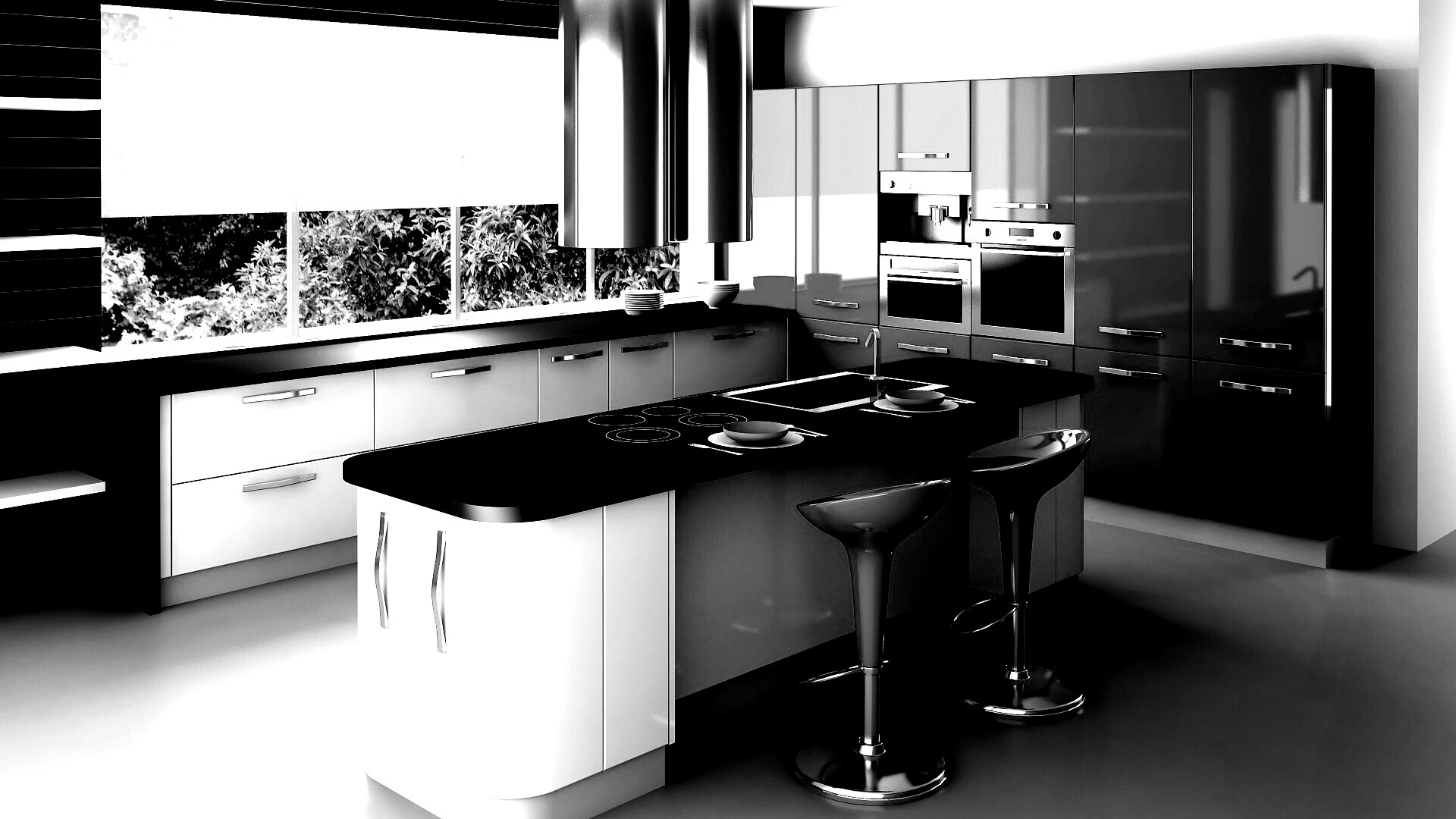 Обои для рабочего стола «Кухня, рендер» 1920х1080 с фильтром inkwell (оригинал 2560х2048)
