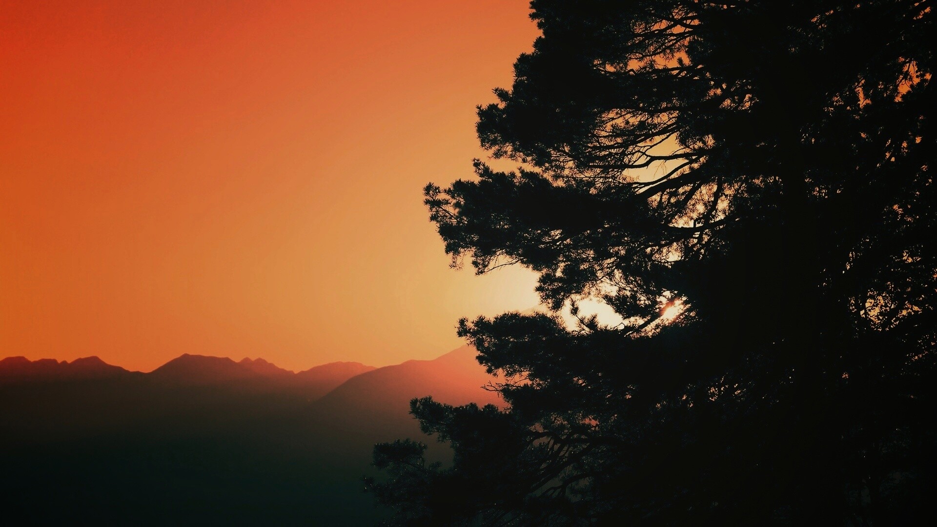 «Силуэт дерева на закате»