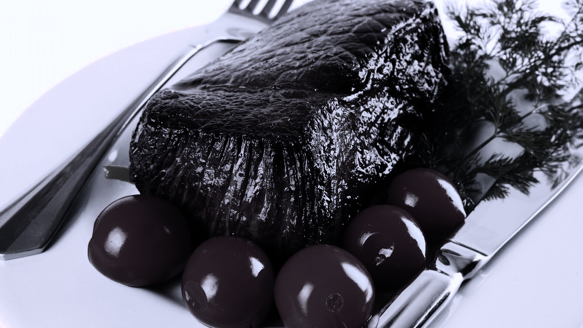 Обои для рабочего стола «Стейк с помидорами» 1920х1080 с фильтром gotham (оригинал 2560х1600)