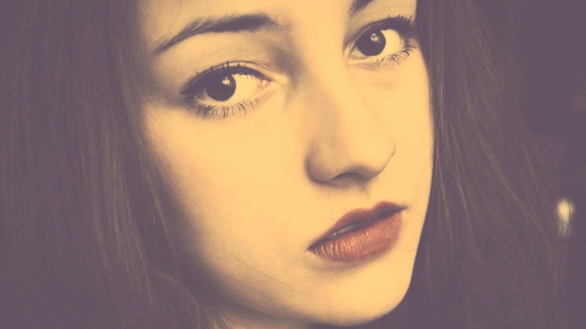 «Брюнетка с ярким макияжем и печальным лицом»